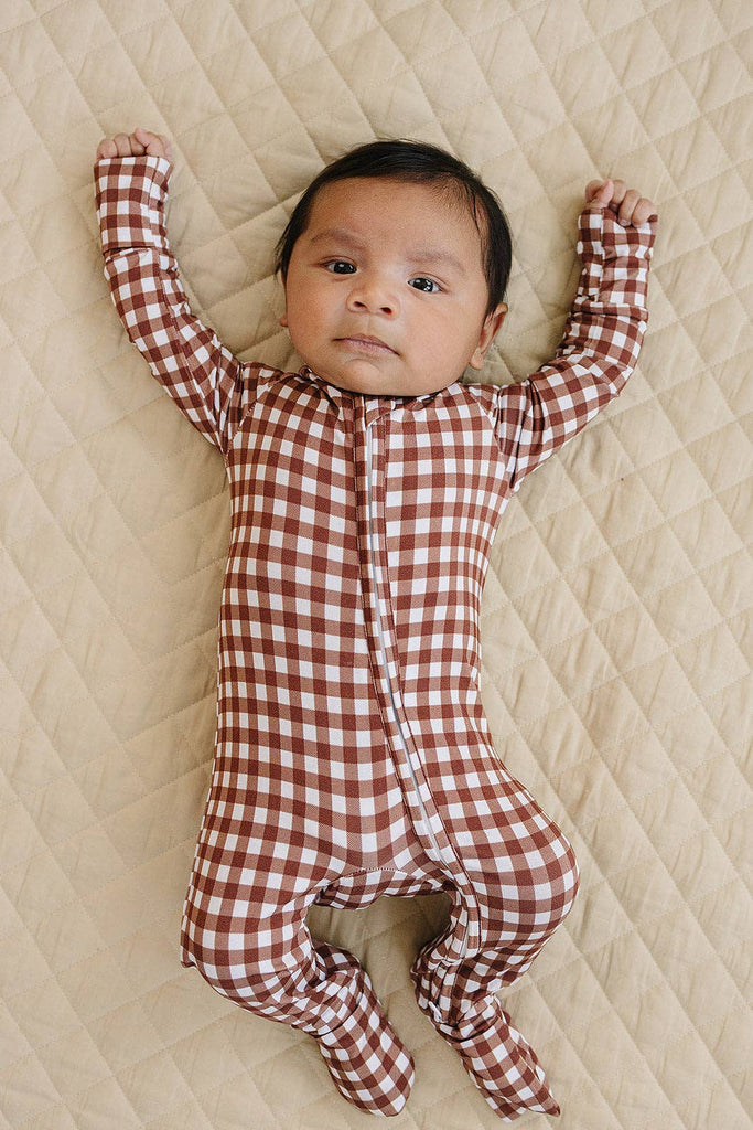 Bamboo Zip Romper | Chocolate Gingham