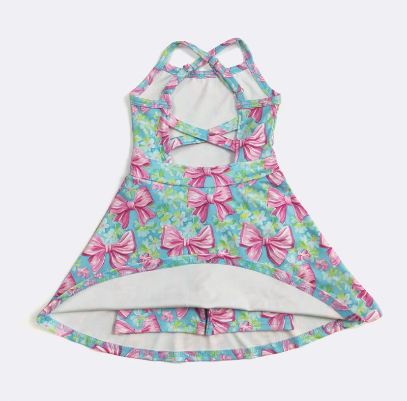 Love this adorable style dress! Athletic fabric, adjustable straps & built in shorts makes this a sporty dress.