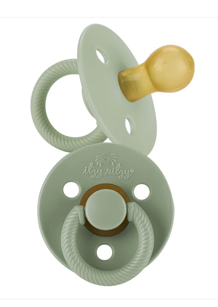 Meet the Itzy Soother™ Natural Rubber Pacifiers! Each natural rubber nipple is cherry-shaped to mimic breastfeeding & accented with a cable handle. Doubly-soothing, every packaged set includes two complimentary colors while meeting ASTM safety standards and are BPA free. Tranquility (and chill vibes!) are restored for your little cutie! Pack of 2 pacifiers. Ages 0m-6m.
