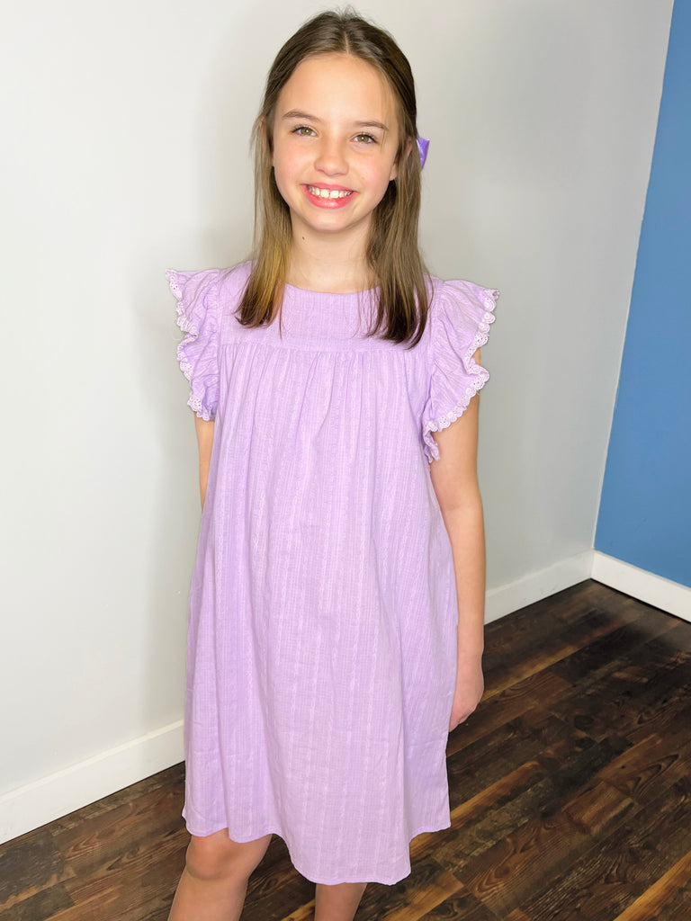 Textured Lace Trim Ruffle Sleeve Dress | Lavender