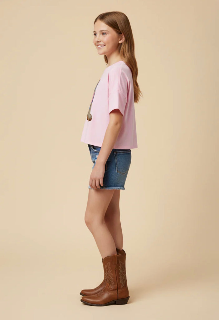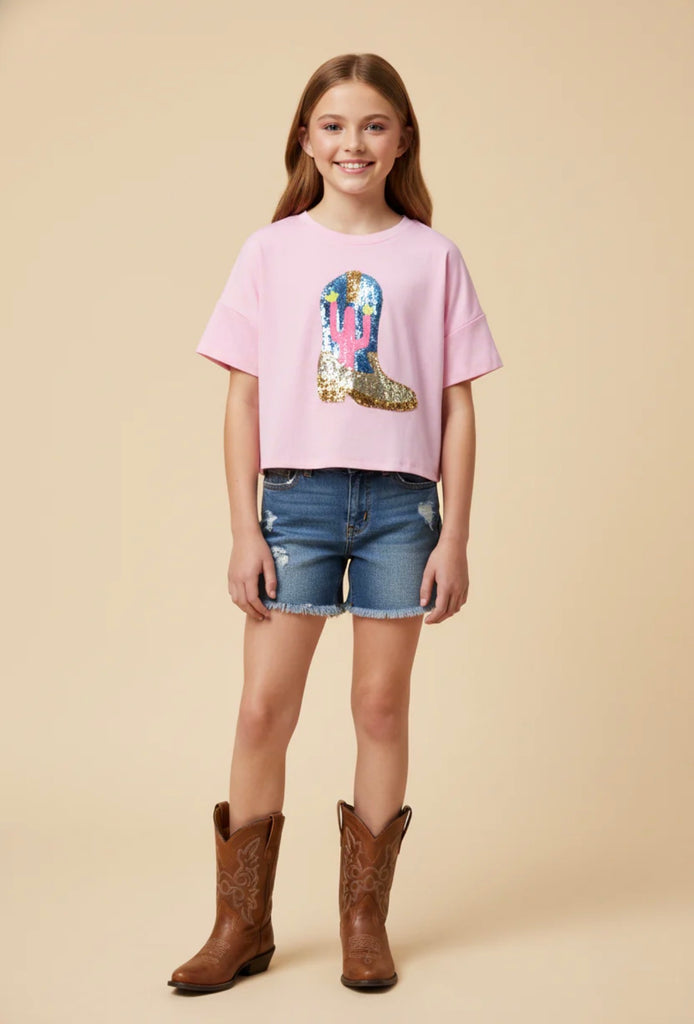 Sequined Cactus Boot Tee | Pink